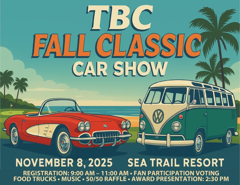 Tri Beach Cruisers Car Show – Sat. 8th, 9-3pm, Sea Trail Resort, 75 Clubhouse Rd., Sunset Beach NC